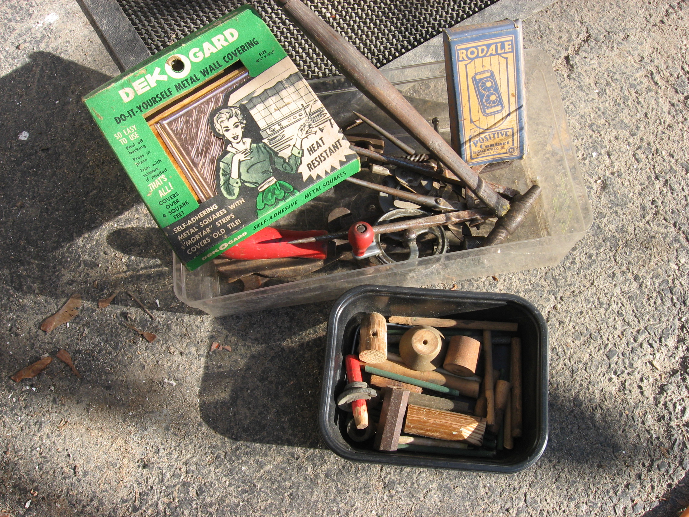 1. I’m enjoying your assemblages of parts of your (new) life. Making some kind of sense of one’s life through visuals is a rare talent. The Dek-O-Gard lady could be you. 😉