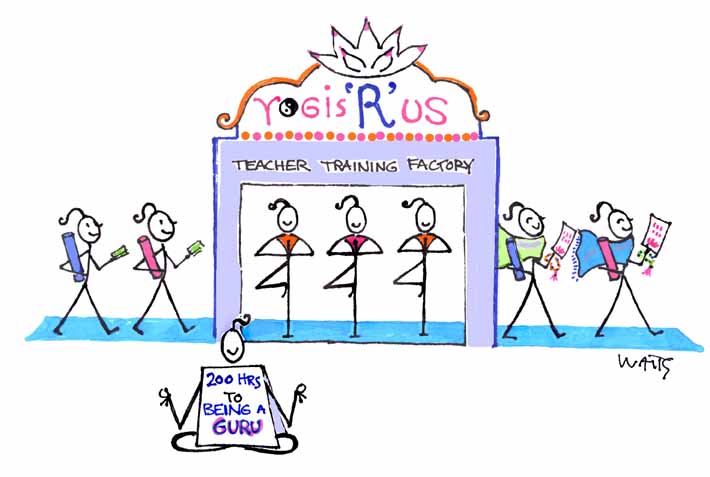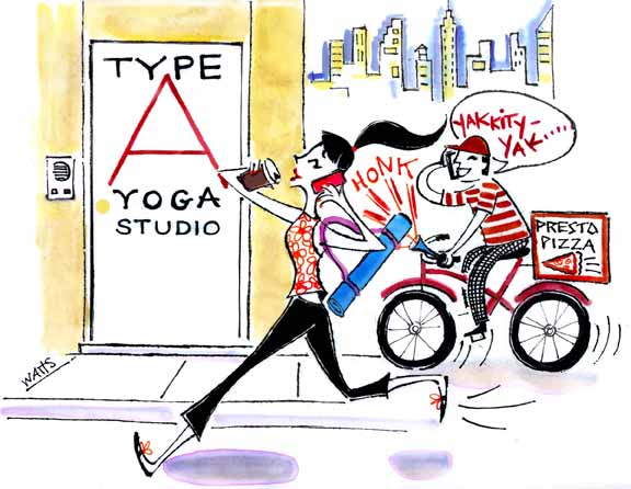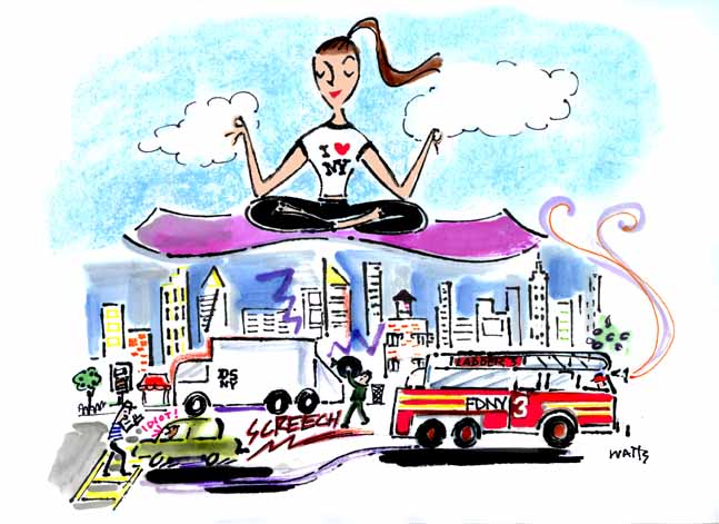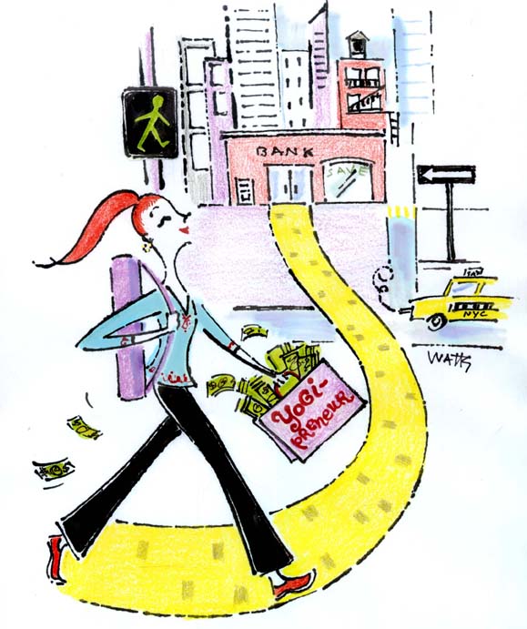 Tax time is rolling around again, and as a freelancer I need to be on my toes as I gather forms from clients and make sure my numbers tally up to match theirs. My favorite gig for the last few years is not only the one that calls on me regularly, but also allows me the most freedom with an illustration. One would think that a yoga blog as serious as YogaCityNYC would require an equally serious approach to the accompanying art, but luckily for me, usually not! It’s hard not to be whimsical with my illustration, yet my editor/art director Cynthia has been known to push me even further. (We’ve both been doing yoga a while, and often view some of the “scene” that has evolved within this serious discipline through a bit of a jaded eye). But that’s Life, always encouraging me to achieve a balance between work and play, and always with beginner’s mind and an open heart.