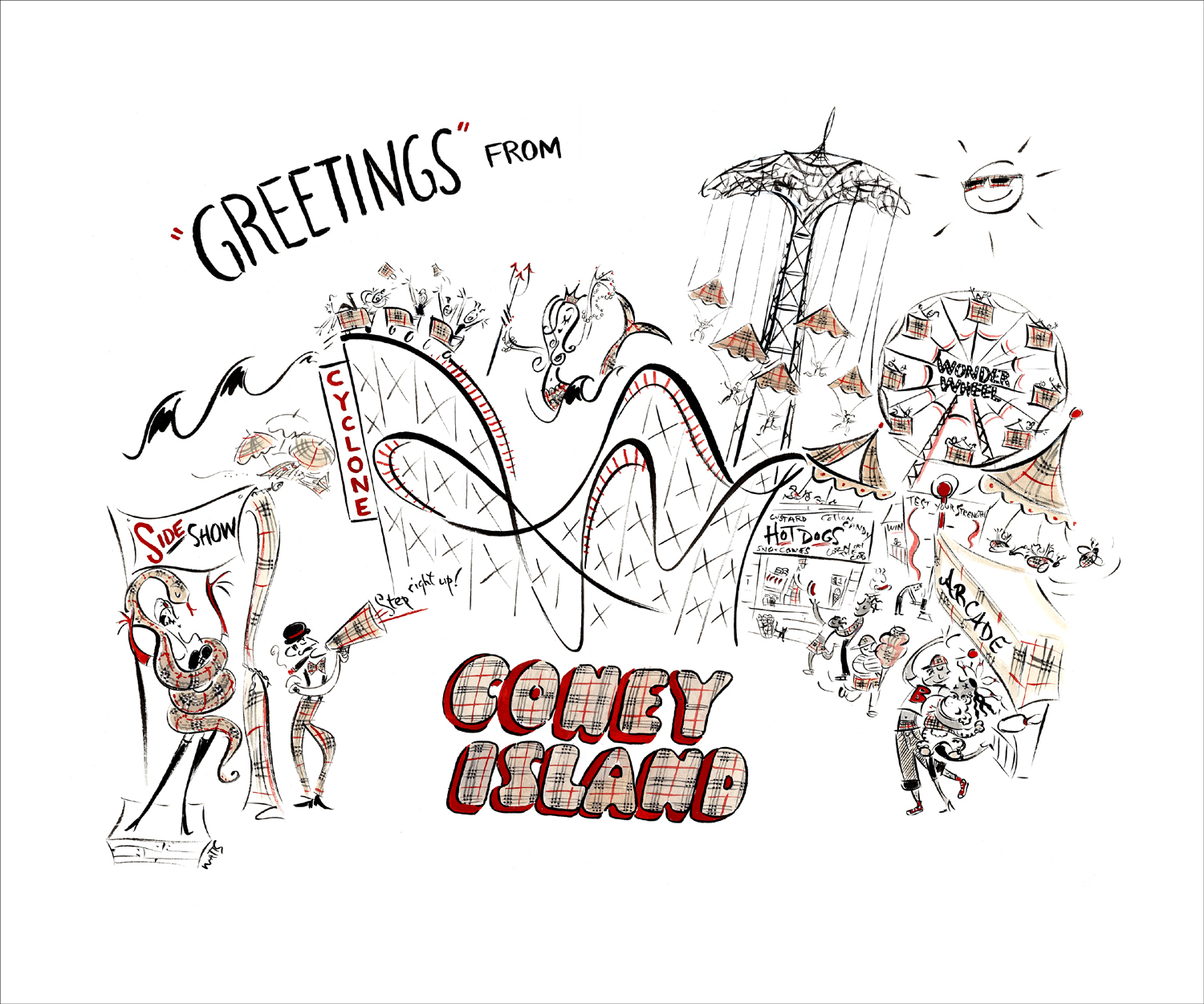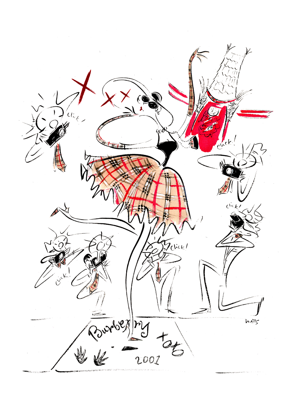 I had segued out of the cut-paper thing that I did in the 1980s, and was now working in loose brush (Keep moving!) Anything that could conceivably have eyelashes got them! (I think I was influenced by Lamb Chop. Or Brenda Starr. Or both.)