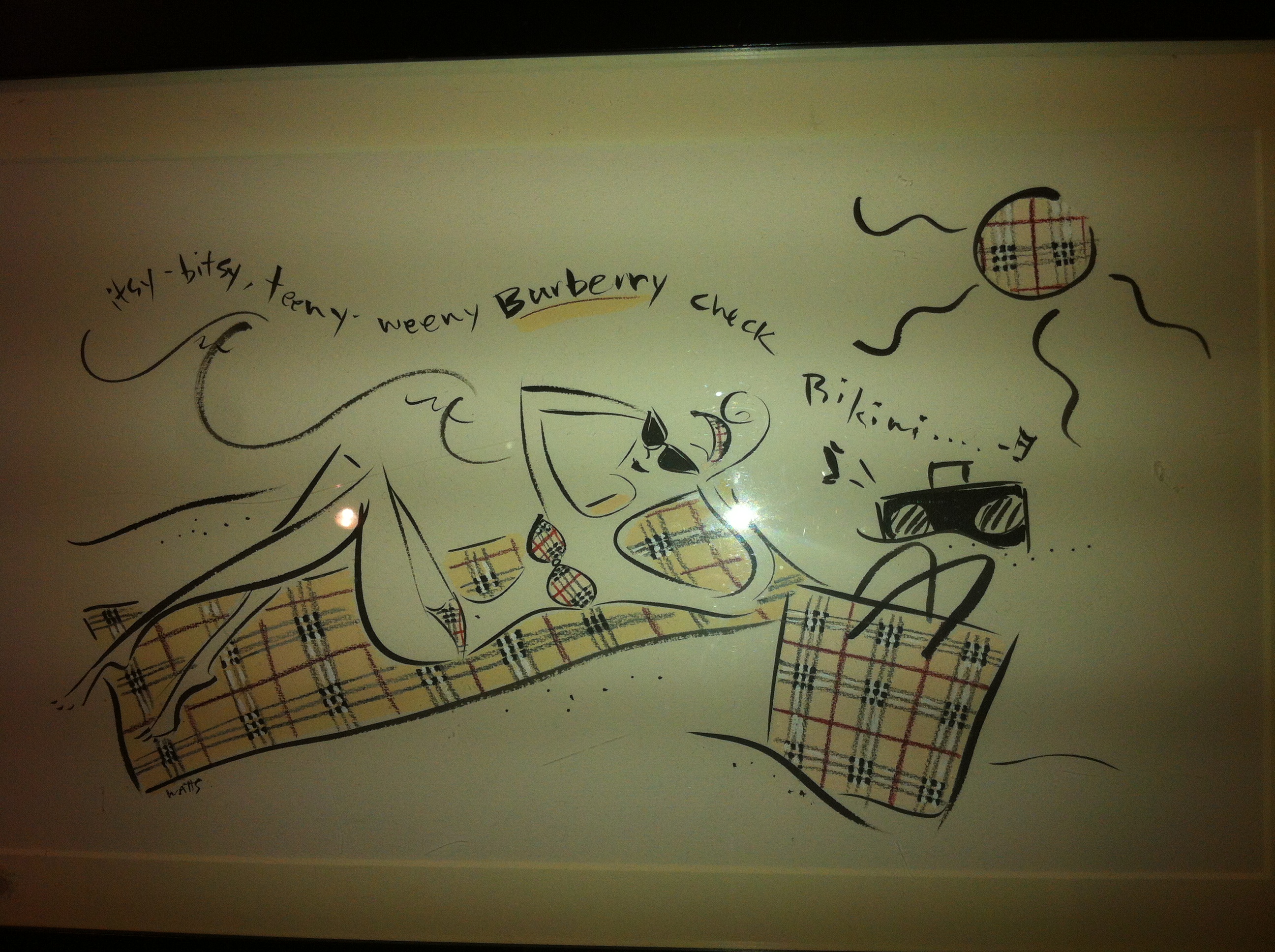 Facing the right of Escada is Burberry. In 2001 they would take over the Escada space and I’d soon be doing murals there, only in the fire staircase that few saw. But that was OK. By then, the fire captain who used to detour his truck down from Harlem to wave at me working in the Escada windows had perished in the World Trade Center. It seemed fitting that I would be embellishing the fire staircase. His last recorded words would be in the staircase at the North Tower.